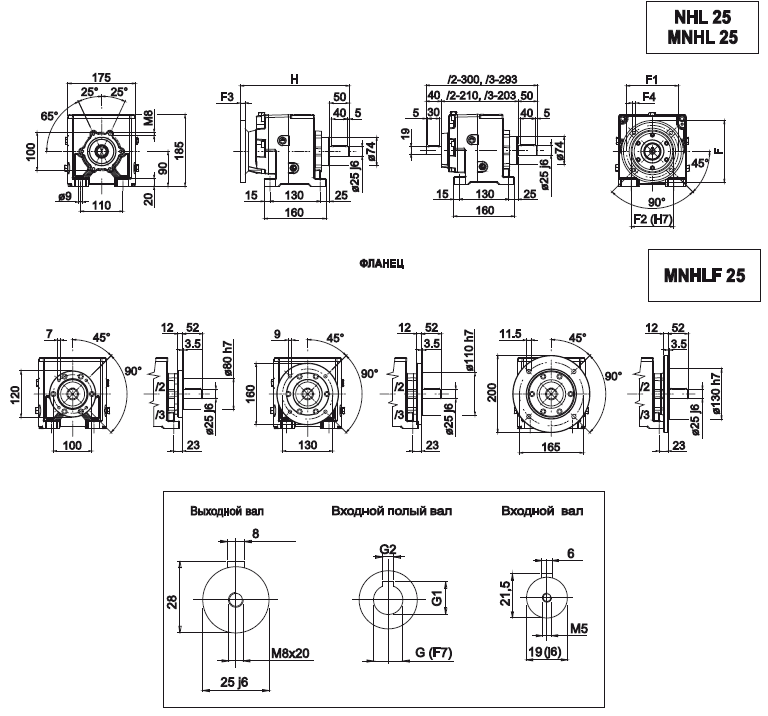Габаритно-присоединительные размеры MNHL 25 |
