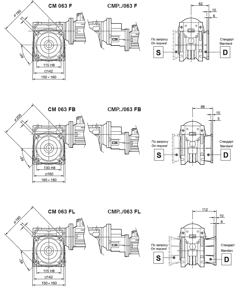 Одноступенчатый мотор-редуктор CM063 серии TRANSTECNO